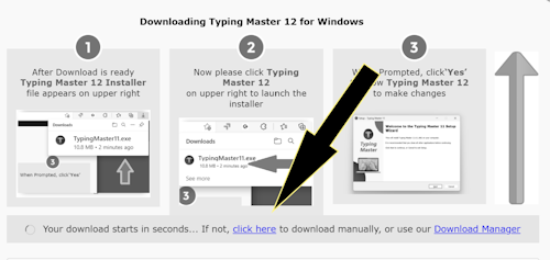 If downloading doesn't start you can click 'click here' or 'Download Manager'.