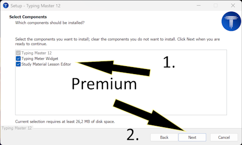 In TypingMaster 12 Premium, select the features you want to use. You must install them during the installation process.