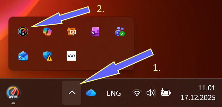 If you can’t restore the Meter from the taskbar icon, click the Show hidden icons arrow (upward arrow) in the lower-right corner of your screen: